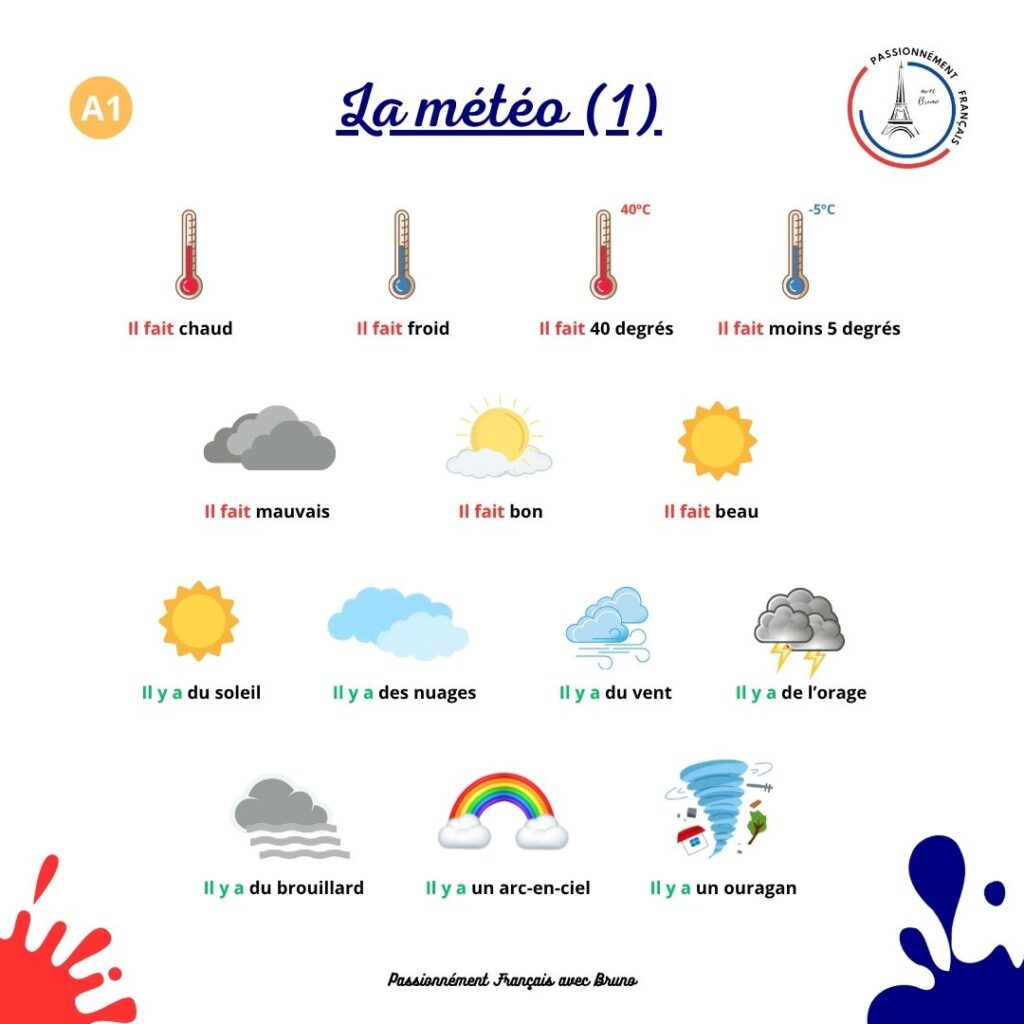 La météorologie Post published:10/12/2025 Post comments:0 Comments Reading time:1 min read Voici des images pour apprendre quelques mots et expressions pour parler de la météorologie pour tous les niveaux. You Might Also Like Les pièces de la maison 28/10/2024 La Chandeleur 02/02/2026 Chez le médecin 29/12/2025 Deixe um comentário Cancelar respostaCommentEnter your name or username to comment Enter your email address to comment Enter your website URL (optional) Guardar o meu nome, email e site neste navegador para a próxima vez que eu comentar.