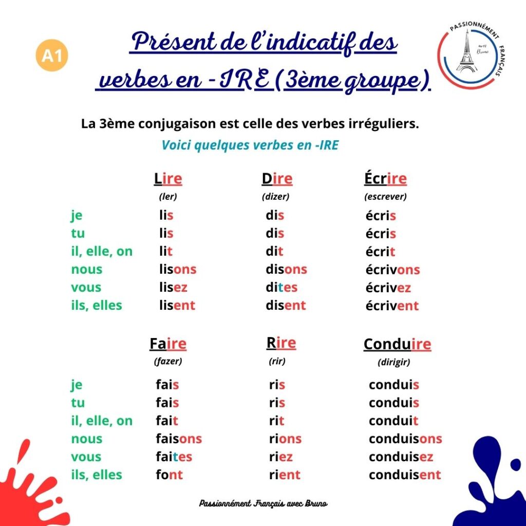 Le présent de l’indicatif des verbes en – IRE, -OIR, -TRE Post published:03/07/2025 Post comments:0 Comments Reading time:1 min read Voici une fiche d’activité avec ses corrigés pour travailler la conjugaison des verbes du 3ème groupe (terminaisons en -IRE, -OIR, -TRE) au présent de l’indicatif. Exercice Télécharger You Might Also Like Passé composé (avec avoir) 22/11/2025 La place des adjectifs 29/12/2025 Le conditionnel présent 30/01/2026 Deixe um comentário Cancelar respostaCommentEnter your name or username to comment Enter your email address to comment Enter your website URL (optional) Guardar o meu nome, email e site neste navegador para a próxima vez que eu comentar.
